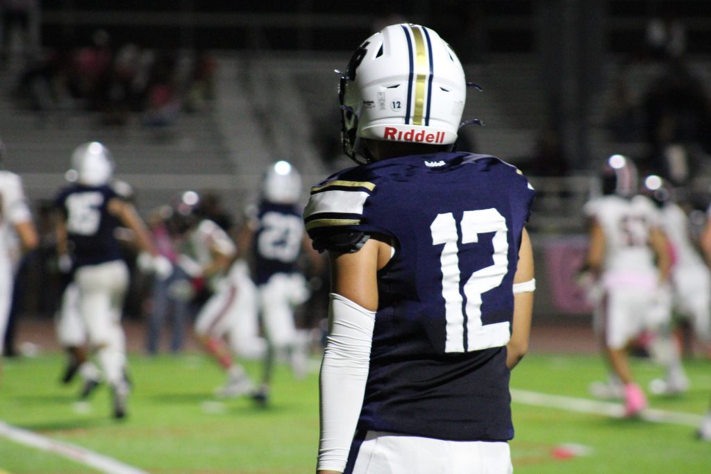 West Ranch’s Juan Nunez watches from the game from sidelines at Doctor Paul A Pre Stadium in Valencia, Friday, Oct. 3, 2025. (Christian Sukitch/Canyons News)